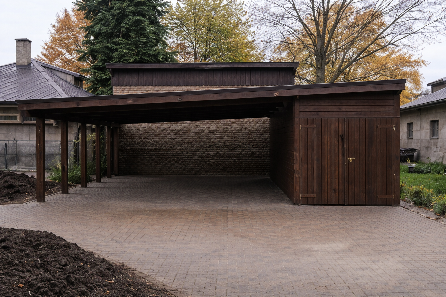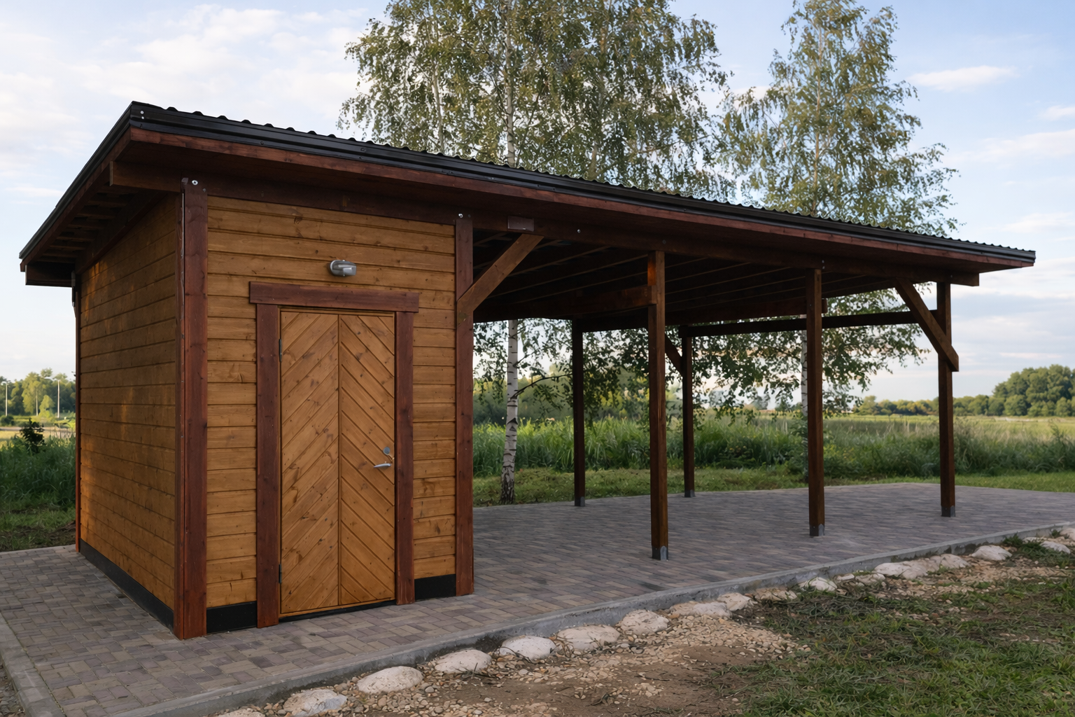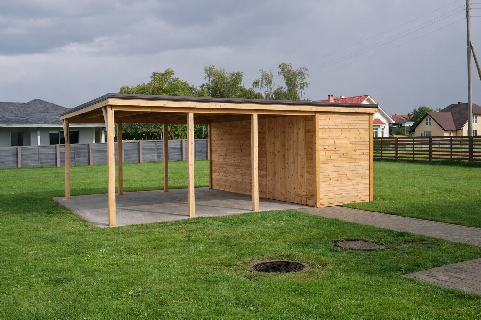 Malkas šķūnīši priekš malkas žāvēšanas, dārza tehnikas glabāšanas,
