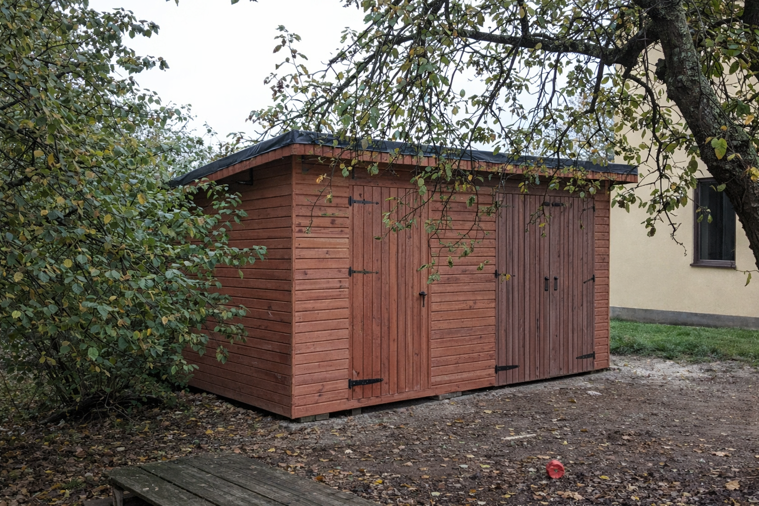 Dārza noliktavas ērtai mantu, instrumentu un dārza tehnikas uzglabāšanai.